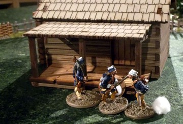 French officers and their marines investigate Tromney’s Farm, which the family has abandoned upon hearing of British-inspired Indians on the warpath. French and Indians clash in this first game using the rules for this group of gamers. Check out the report on Tom’s Toy Soldiers blog.